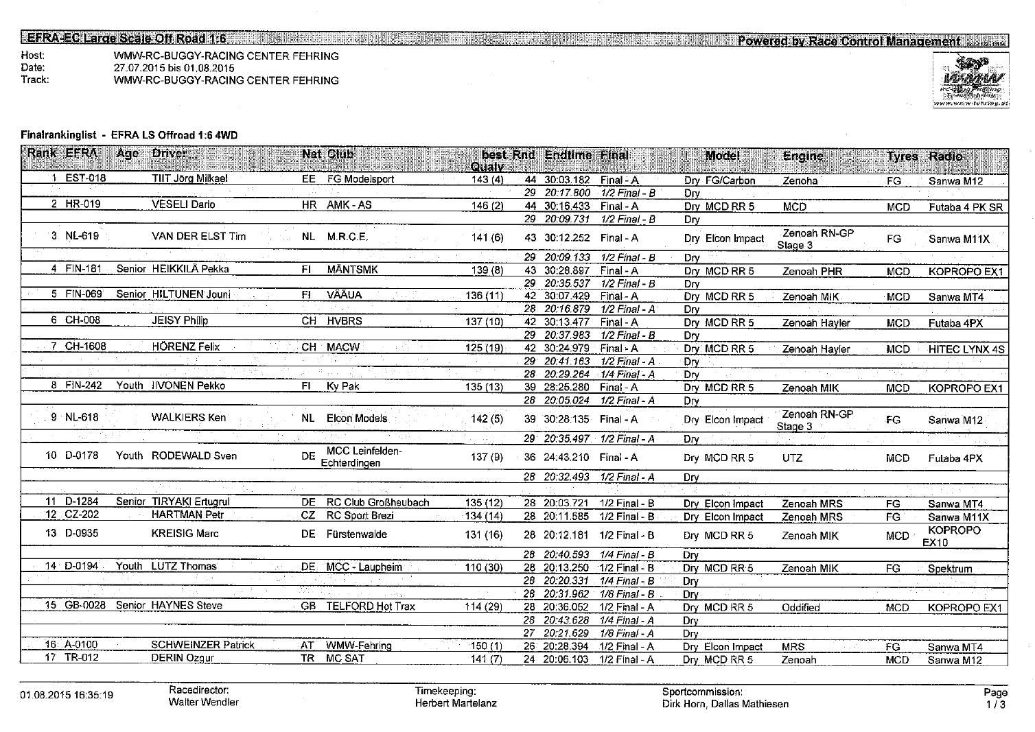 We would like to thank again to all MCD Drivers and the Teams Trottman, RC Fox,Hobby Center and Elfving Racing for their racing spirit. They put an enormous effort for the success.