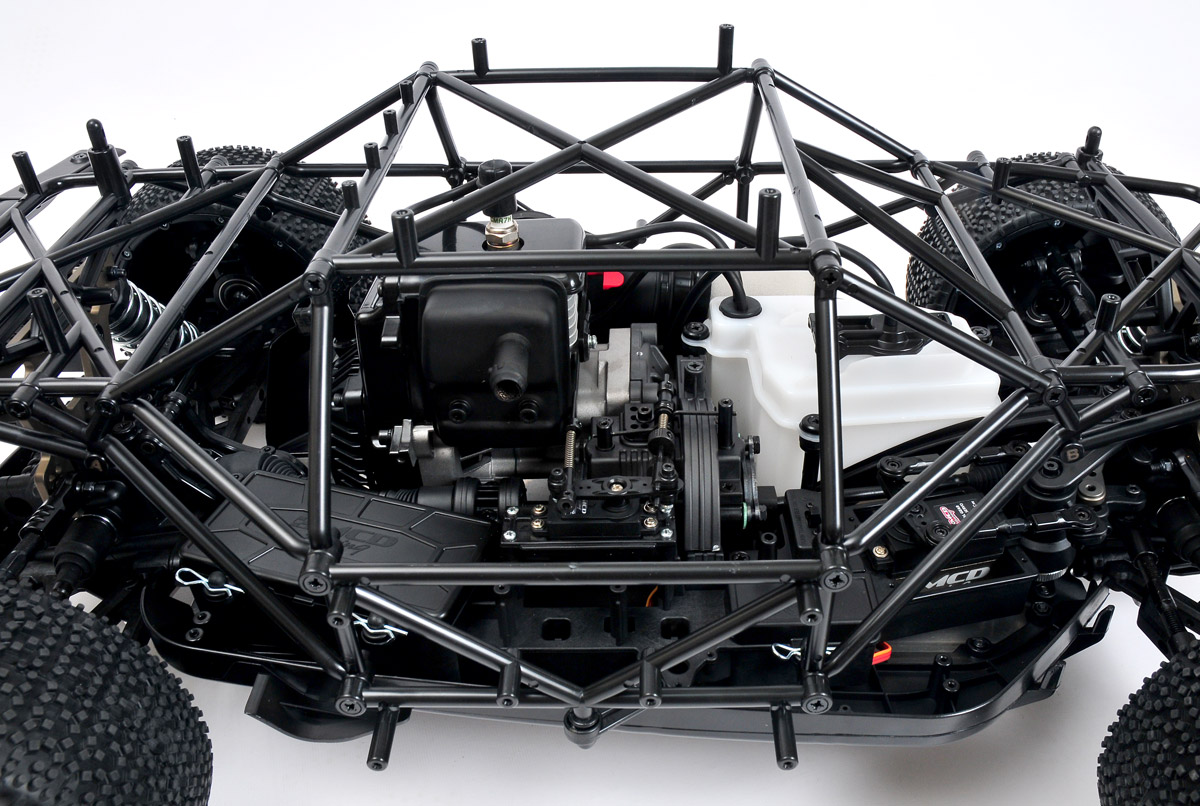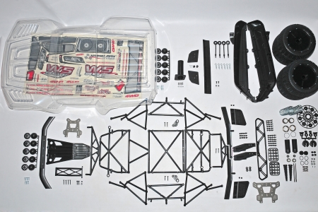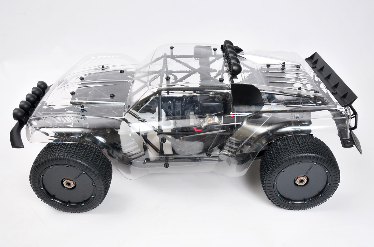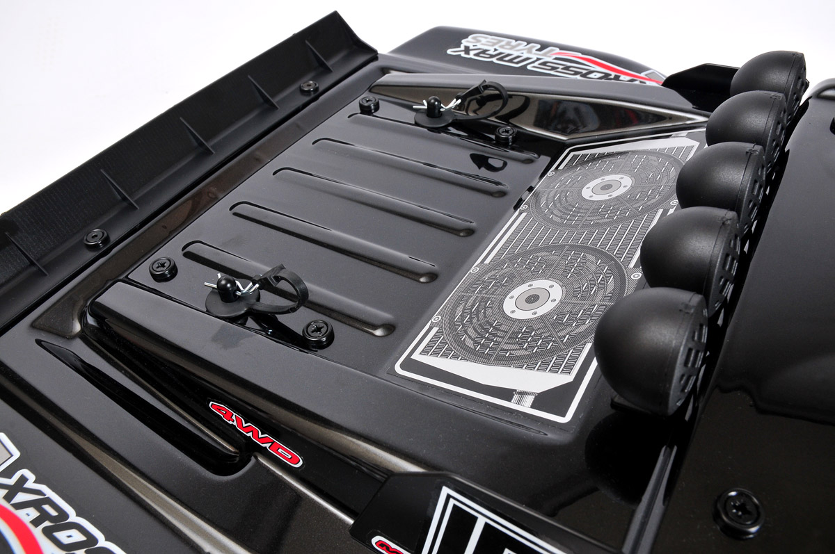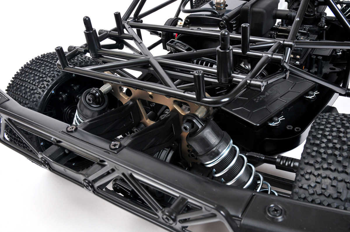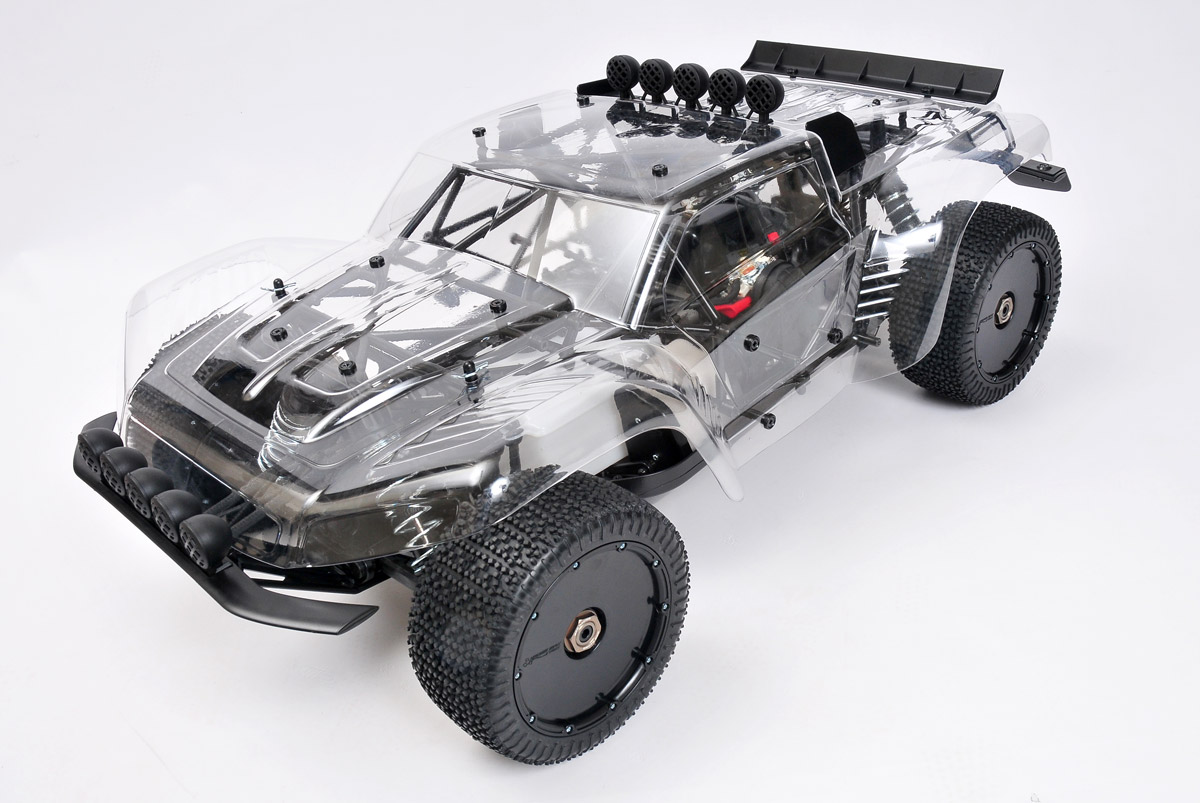 The W5 Body, W5 Decals, FT Spec 7075 alloy anodized shock towers, FT Spec coil-over composite shock absorbers with High Pressurized Cell System, the 190 mm Xross-Max Bite W5 tires, side guards, fully composite body accessories, W5 rear and front bumper and the W5 roll cage.