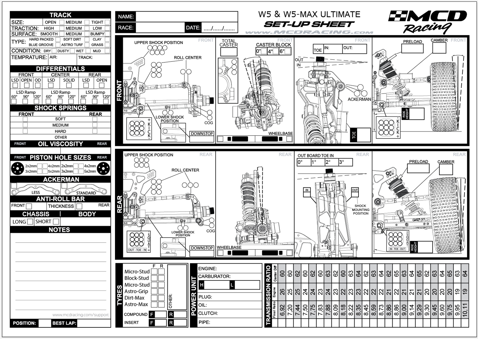W5 & W5MAX Ultimate Set-up Sheet